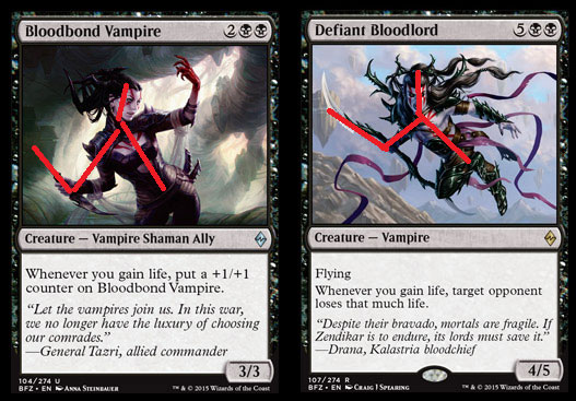 To add in that differentiation, we had creatures that weren’t confused or in the final set; Rise of the Eldrazi level up creatures looked nothing like other cards, keeping them unique.