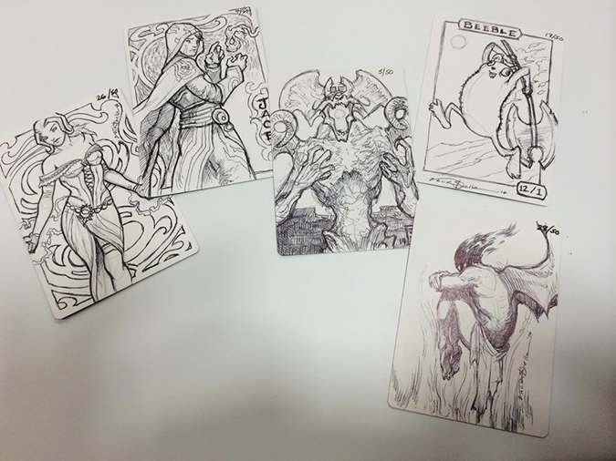 You probably didn’t know that Zack does sketches on the back of his artist proofs that includes Planeswalkers and Beebles, did you? You could literally scan them, blow them up to 8" × 10", and have a coloring-book page for your kids. They’re really quite lovely.