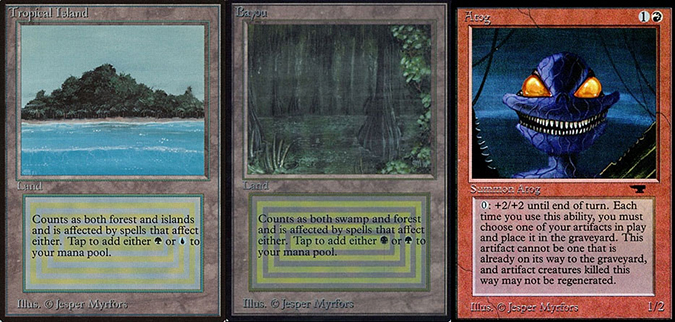 As for the artists, I added three images for each artist. One is for the card that’s well known, one is lesser known, and the third is generally unknown. Gatherer is great to find artists who have done the same card name multiple times, such as for basic lands, but nothing beats MagicCards.info for finding tokens and promotional cards easily.
