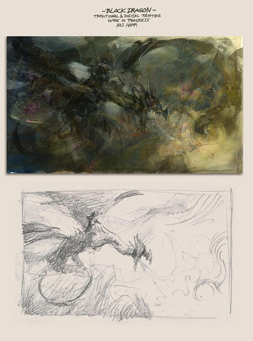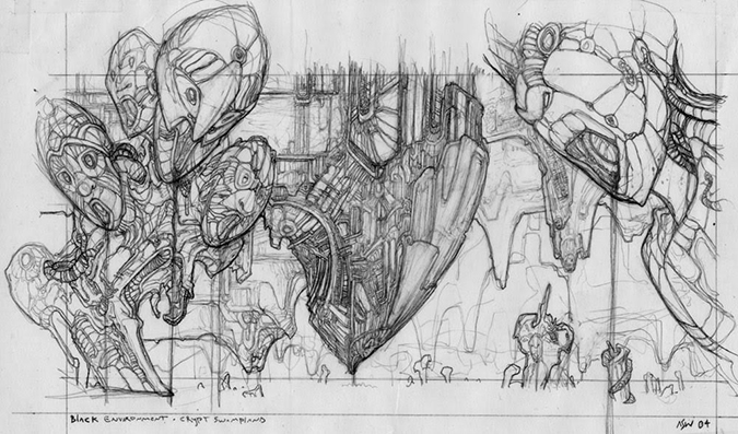 Since Nils has the side-event play mat, I receive some access to have his early sketches. Check them out—they’re pretty neat: