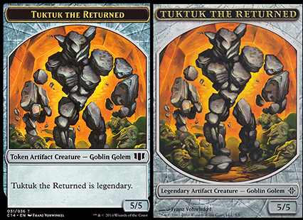 Also note that his Tuktuk the Returned token looks a lot different in the two framing options. If you want one altered or signed, absolutely go with the Rise of the Eldrazi version. It just looks better.
