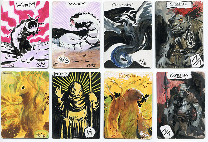 Nils, being the play-mat artist, is really going all out for Grand Prix Seatac. He now has over one hundred card arts, and beyond his pile of artist proofs, beautiful prints that you haven’t seen up close yet, he’ll have hand painted tokens: