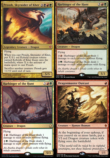 As for Dragonmaster Outcast, notice how the figure is the focus with a dragon overhead, and in Scourge of Nel Toth, the opposite is true. But in the case of Winters’s work above, by naming it “of Nel Toth” and showing the green circle glowing on the figure, we can place that person as Meren. That’s great storytelling in such a tiny space. I hope more legendary creatures or known-by-costuming figures could be in dragon depictions that might have dozens to hundreds of members, such as a certain type of soldier, goblin, or undead.
