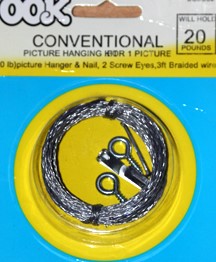 They are pretty cheap, usually under $10, and have everything to hang your artwork. The reason you want wire is that the alligator can literally rip the top part of your frame off with sheer weight and gravity over time. It's not awesome when it happens. Use wire - just do it. What I find is best is when you use wire, but attach it to the wall with the one, two, and three nail hooks. Obviously, the heavier the art is, the more nails you'll need. This is for when you can't find the wood studs in your wall or don't want a giant nail in there. I think it makes it sit more flush with the wall.