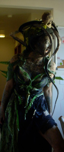- The costume turned out more tribal than I’d intended. That’s a design flaw. While the skull is Golgari-appropriate, it calls to mind the shamanic attire of Deathrite Shaman. When we get tribal, we start to hit Nissa territory. The costume is gorgon to the core, but it’s not as obviously Vraska as I’d like it to be.