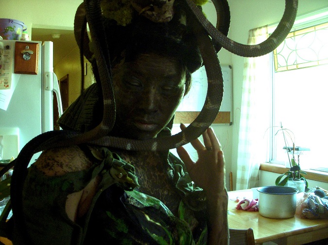 I love the power and elegance of gorgons, and overall, I am pleased with how the costume turned out. Obviously, this was for a photo shoot—as I wouldn’t have been able to go to an event or even walk down the street without my hide disintegrating. That’s flavorful, though.