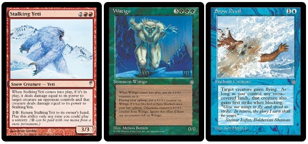 At first glance, we’re entranced by Elesh Norn’s massive headdress. Her high-contrast ensemble featuring saturated scarlet is going to turn heads anywhere. But I want to draw your attention to a downplayed feature of Drana’s: those colorful insect wings on her back. Rules text: “Flying.” While vampire-with-butterfly-wings still isn’t as overtly arresting as Elesh’s rib cage, it’s a detail that gives us mad creative play. The wings could be done half or completely unfurled, which might contradict the card art but would make the cosplay more striking as a whole. These both have high annoyance factors: Elesh’s over-eyes hat brim and waifish waistline; and Drana’s pasty makeup and arm augmentations . . . but these are great learning opportunities, too. Also, if done right, these unusual female characters will cosplay with a timeless, sculptural, serious-art gravity.