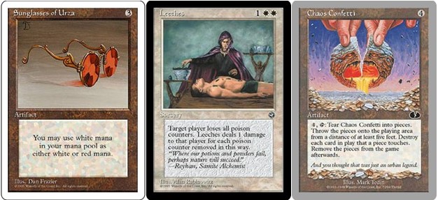 Urza’s Sunglasses, a bottle of Homelands-brand Leeches, and some Chaos Confetti in case things got rough.