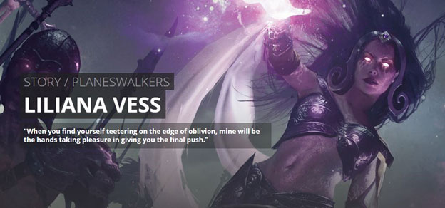 If you crave more Liliana, I write a helluva lot of character-driven Planeswalker fanfic on my blog. Rated M, but tastefully done and seriously considered.