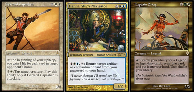 Lore-wise, what we’re talking about here are the various people who crewed the interplanar skyship known as Weatherlight. This ship was designed by Urza, an artificer and Planeswalker notorious for his brilliance and his meddling with world events. Urza has left his mark on MTG with a constructed-playable Legacy, which is ironic because his big project from back in the day was actually called “The Legacy.”
