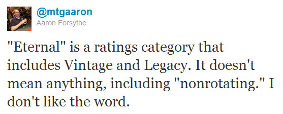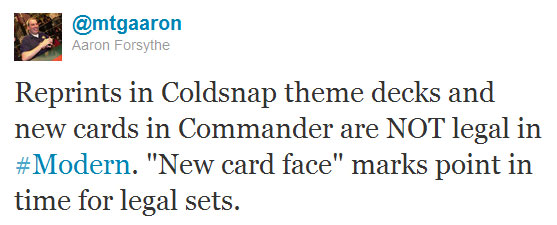 As the Magic world soaks in the new Modern format, R&D has come forward with important notes of clarification about what the Modern format is, and what cards are legal in it. Here are the tweets below: