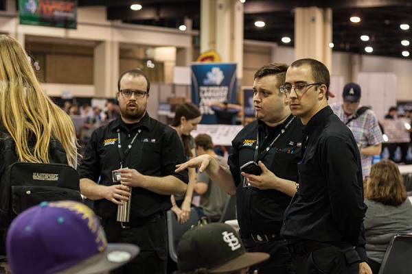 In Atlanta, Jeff worked round one through nine. His team immediately posted pairings for round one. During round one of a Grand Prix, there is a list of things that need to get done or solved: pairings need to be posted, printer paper needs to be found, the paper cutter needs to be handy, and deck lists need to be sorted. There are teams of judges to handle each of these teams, but it’s the most hectic part of the day. Once the day begins, it is a lot calmer except at critical points, at the end and beginning of rounds. Jeff uses this time like most of us might at a large tournament. “I love watching Magic . . . I love seeing the decks that people are playing, seeing the excitement of someone casting Aetherworks Marvel,” he says. He will also have discussions with other judges about policy or the rules, or catching up. The work comes first though: “GP days I try to stay in the zone. I give less regard to what is going on in my outside life and will tell people ‘I’m at work.’”