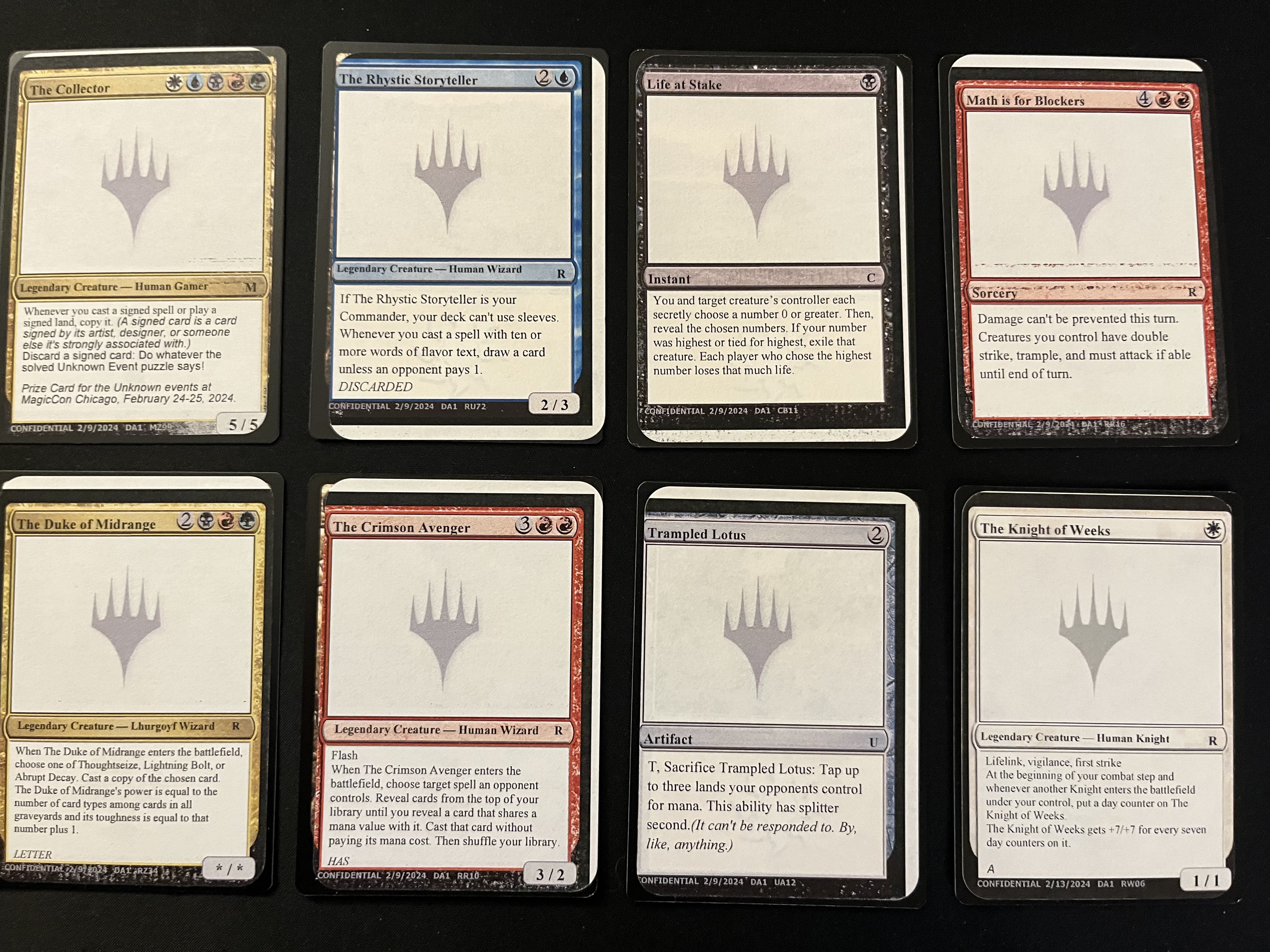 No doubt owing to the popularity of play-test cards in Mystery Boosters, these cards - and their respective events - have become mainstays of MagicCons since their debut in Philadelphia last year. No one knew what to make of them initially, but after the first event, each Unknown Event is almost guaranteed to sell out and the play-test cards have become collector pieces in their own right.