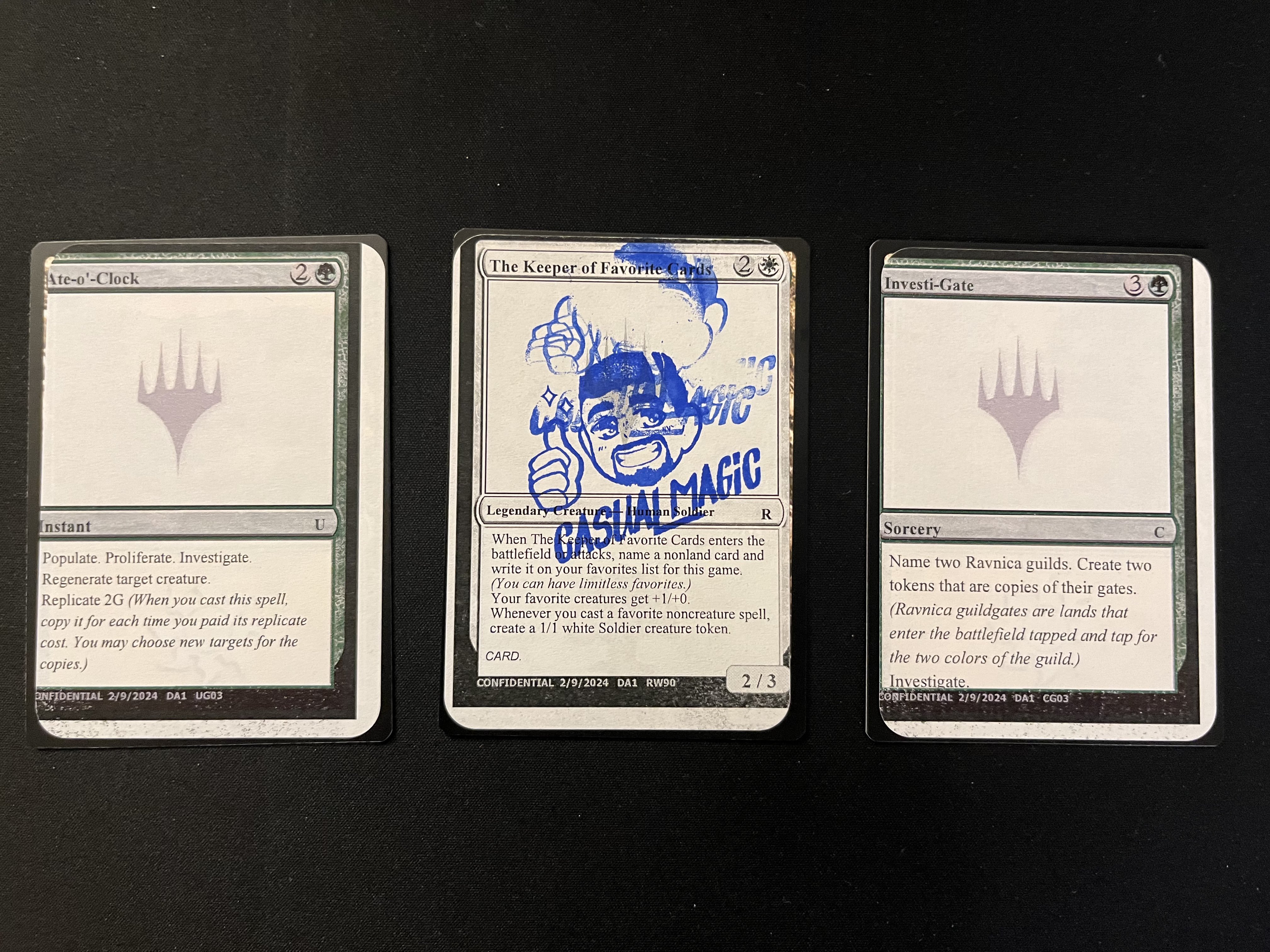 Each of these were some extremely fitting and on-color cards created specifically for the event! Ate-o'-Clock provided a ton of value for a low cost and Investi-Gate provided some guaranteed fixing in addition to a Clue token. Best of all was The Keeper of Favorite Cards - a nod to Shivam Bhatt, who famously loves to call tons of different cards his favorite card during his podcasts and helms a Soldier Commander deck. Each legendary Unknown card for this event was based on a well-known Magic content creator, as you could see in the previous image that included nods to Sam (Rhystic Studies), Reid Duke, Rachel Weeks (Game Knights), and Crim (TheAsianAvenger). I even got to bump into Shivam at the event and he used his creator stamp to spruce my card up a bit!