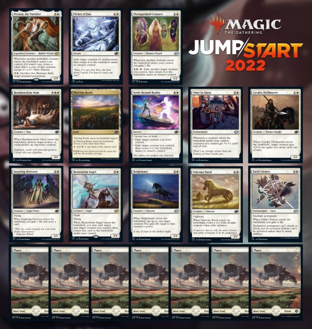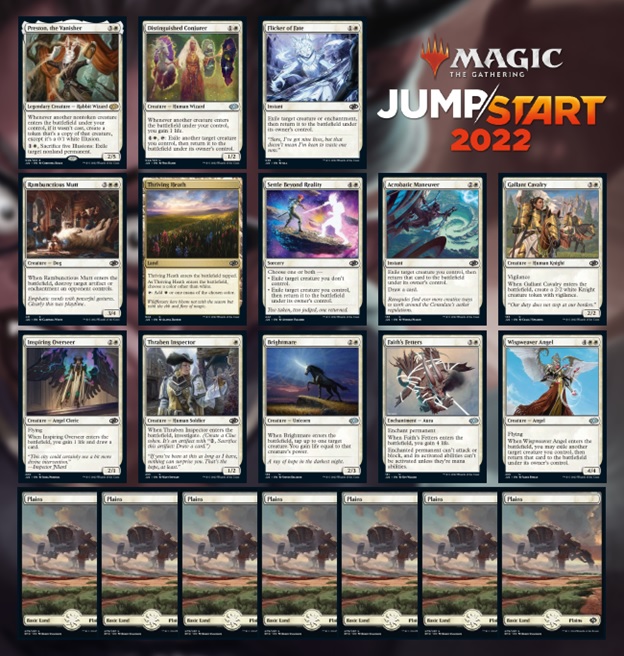 Now comes Jumpstart 2022 and we get an entire dedicated pack themed after Blink strategies! These packs are Mono-White, so while there's definitely a few usual suspects not seen here, there's a lot of great stuff to work with. There's sure to be tons of great value in other packs you can work off of as well, which will certainly make for a lot of fun casual gameplay during downtime at your LGS. We even have some sweet new cards joining the fray as well!