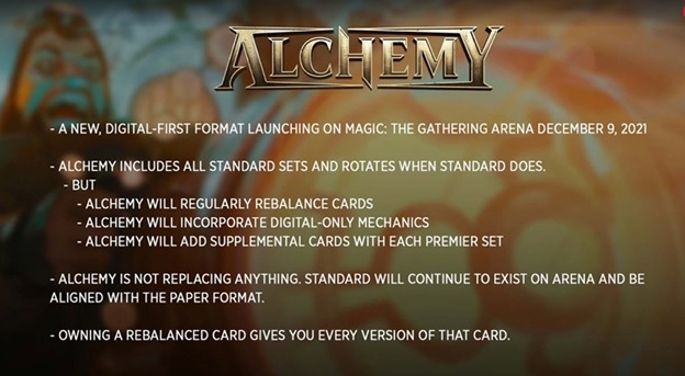 Alchemy is an all-new format designed around really playing with the concept of being a digital game. Remember the Mirror, Mirror event where they digitally tweaked and nerfed powerful cards to bring them down to a playable level? They basically took that event and made it an entire format where they can change powerful - and dare I say broken - cards and bring them down to a more acceptable level. This allows for an alternate Standard to now exist on the MTG Arena client.