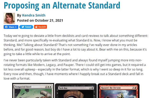 There was this idea of making an alternate Standard queue. Something that could be toyed with and used to give players a different way to play the format while also exploring new ways to rework how the format plays in paper. Basically, use it as a testing ground while giving players a format that's a little fresh if they want something different.