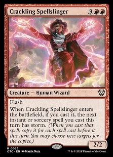 Ever wanted to give any of your spells Storm? That's what Crackling Spellslinger lets you do! There's tons of options that you can do with this, from something as simple as copying a Ponder or Lightning Bolt several times to getting several instances of Demonic Tutor or Return of the Wildspeaker to really close out games. Any deck running Red is going to want this just for the sheer value it brings to the table - particularly if you're piloting a Storm-centric deck.