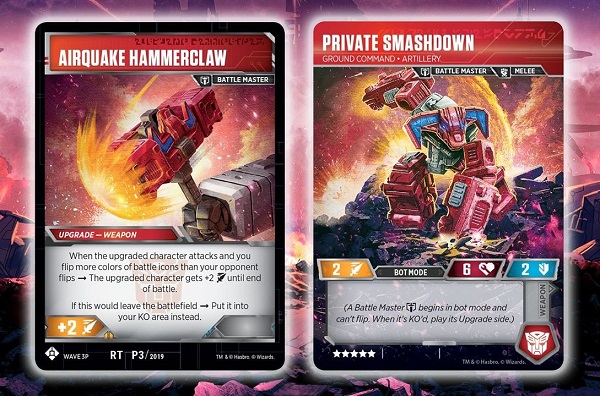 Since the major theme of Transformers is, as we discussed, transforming, naturally the characters in the card game can switch easily between their various modes, usually by flipping them from one side to another. Each mode of a character can have different stats for attack and defense, and different abilities to reflect the different combat capabilities of the mode that they're in. Now, while a character flipping from one form to another in games isn't unheard of, the fact that Transformers characters can do it pretty much "at will" sets it apart. In other games, like the aforementioned Dragonball Super, your character only changes when certain requirements are met, or when a specific card is played, etc. but in Transformers, you will have the opportunity to switch one of your character's modes at least once per turn, every turn.