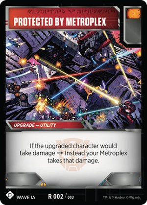 Because your deployed bots are so crucial to Metroplex's primary ability, keeping them alive should be your number one priority. To help facilitate this, Metroplex comes equipped with two excellent cards, Protected by Metroplex and Rally the City. The first is an upgrade that lets your Metroplex take the hits for his team, and the second allows you to gain card advantage over your opponents, which is just one more reason to keep your smaller bots alive.