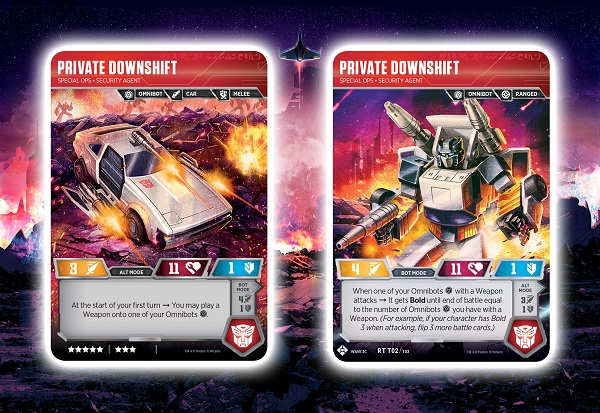 Similarly, in Downshift's bot mode, he empowers our weapon-upgraded Omnibots with Bold equal to the number of weapon-upgraded Omnibots on our team. Pairing this up with our Focus ability from Overdrive, we can stack our deck and flip more battle cards while on the offensive, hopefully getting ourselves the most bang for our buck when we attack.