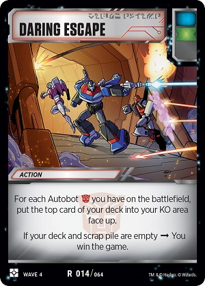 Introducing the Transformers TCG's first alternate win condition card, Daring Escape for the Autobot faction!