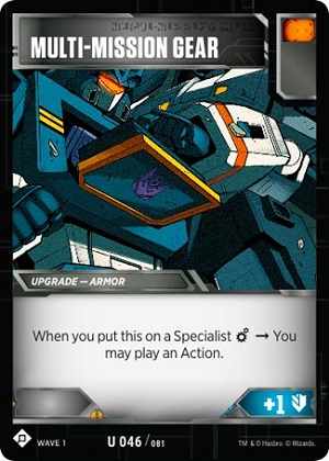 Let's start by taking a look at some upgrades that allow us to get some extra actions onto the field during our turns first, since there are a good number of them less than there are actions that play more actions. One of the early stand-outs in this space, and one of the reasons why the card Swap Parts became overpowered to the point of getting banned but also to make the rules of the game itself change, is the card Multi-Mission Gear.