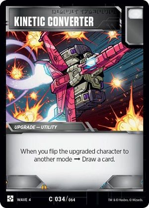 As stated above when talking about Pocket Processor, you never want to give up a card draw engine, and Kinetic Converter is no exception. If your character pool consists of bots with already solid flip abilities, adding a card draw to that is just a bonus. Even if your flip abilities on your bots isn't all that great, you'll still want to find a way to work this your deck. Since it is taking up the usually empty Utility slot on your bots, you don't have to worry about giving up a solid weapon or armor upgrade to play it, either.