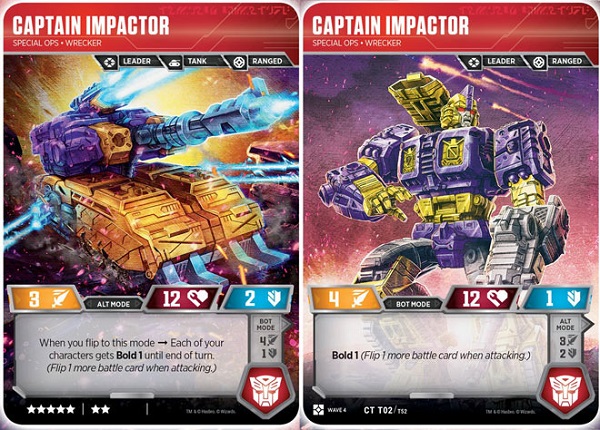Rounding out our Autobot picks is the Wrecker, Impactor. While he doesn't seem very impressive on the surface, his low star count and Bold abilities, for himself in bot mode and for the rest of your team when you flip to alt mode, makes him a solid support character. While he probably won't be the hero of your team, he's definitely a solid addition for his low cost.