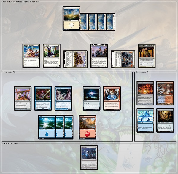 That, you think, makes Nox's Mono-White feat all the more remarkable: His deck picked up a six-turn kill against you in your first game, and you're thanking your lucky stars that his current draw is a little slower (but not by much).