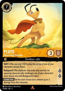 Pluto is a great defender given that it has 8 Willpower and Bodyguard, allowing you to quest with your other lower cost characters without the fear of them being challenged without dealing with Pluto himself. When shifted early on, this could spell trouble for your opponent.