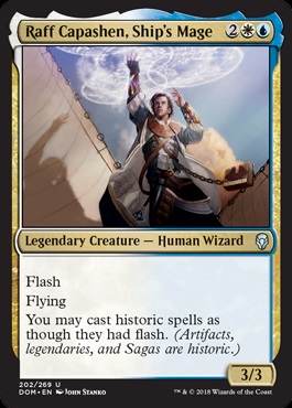 I think the most interesting thing about Raff Capashen is that he gives you a fair amount of flexibility without locking you into any one tribe or any one type of deck. I'm not sure I'd build him, but I can definitely see how a Raff deck could be really fun and exciting to play. Trying to figure out how to turn legendary creatures and artifacts into instant-speed combat tricks might be a rewarding puzzle to try to solve.