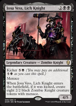 Josu Vess is a zombie knight with 4 power and 5 toughness. He costs ![]()