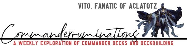 Not every commander lends himself to clever puns and witticisms, but Vito has flying and I keep thinking Alcatraz when I try to write Aclazotz. Vito, Birdman of Aclazotz... er... Fanatic of Aclazotz, is a more powerful Nim Deathmantle commander than many that I've built around. I know I have a weakness for that little combo piece, but unlike Mahadi, Emporium Master, Vito will just kill the table if you do it right. Mahadi will reward you with a boatload of Treasure to throw into an Exsanguinate or Torment of Hailfire, but Vito will just get the job done on his own.