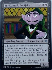 A part of me wanted to stay away from doing too many Sesame Street alters. I'm over 50 years old, for goodness' sake, but I also found it hard to resist characters like Oscar the Grouch. When it came to choosing an alter for Syr Konrad, the Grim, who just loves to count how many creatures went in or out of your graveyard, there was only one choice: The Count.