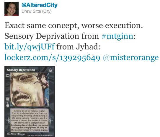 MJS: That picture is sick. It illustrates the card, but it isn’t ham-handedly literal. Also, Ryan managed to give that zombie lady (?) a lot of character. I totally empathize with how she’s feeling! What a great piece.