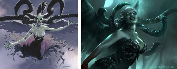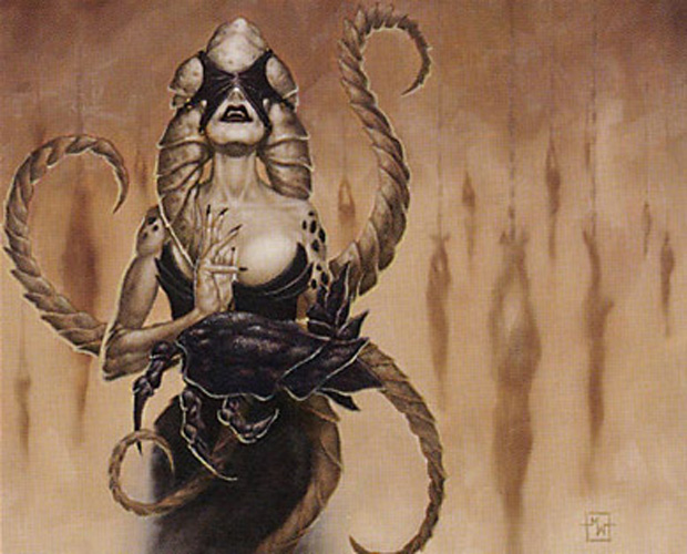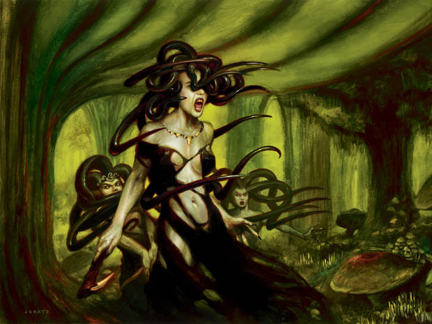 Since in “real life” we have shows like Here Comes Honey Boo Boo, we might as well have our MTG article that celebrates the glory of horned and tentacled ladies. After all, women who strangle, decapitate, corrupt, and otherwise wreck rivals and ’walkers are about as disturbing as what goes on in the kiddie pageant circuit, right?—Bolas help us, punch me in the ying yang. Is this the American dream? Back to gorgons, please. Who’s the baddest chick of them all? You decide. Here’s a rundown of the top contenders—enjoy the view, then cast your vote!