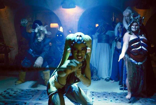 Oola may have lost her octagon match versus the Rancor, but she won our hearts forever with her spunk, perfect green complexion, and not-so-strategically placed fishnet. Some of you may remember Disney’s Sleeping Beauty with the elegant and dangerous black-magic-wielding sorceress Maleficient as the villainess who can morph into an elder dragon. Angelina Jolie, in 2014, will be the live-action embodiment of Maleficient who charms/terrifies an entire new generation.