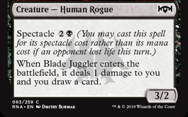 To start off, I have a Rakdos Card, Blade Juggler. This is the relevant part to look at first: