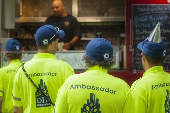 You will see these neon shirt folks with blue hats around the downtown core. They aren't police officers. They're like, downtown helpers. They clean up the streets and will walk you to places for safety. If you need directions, they're good to ask for that. They are universally liked by the locals.