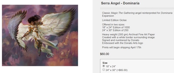 Donato also pre-framed lithographs already mounted of some of his artworks sold at conventions only. I own one of Cartographer and it's a print run of 10. If you see him a Illuxcon or a Grand Prix, you'll find he has those as well and they're often an affordable $100 or so.
