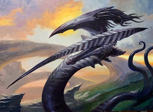 It is technically similar to Fettergeist, Illusionary Servant, Riptide Chimera, Stitched Drake, and Wormfang Drake, a concept of 3-drop 3/4 with a drawback. Here, we see a strictly positive card, dumping lands in your hand in draft for better cards. It also fuels flashback and threshold. I think it's lovely and I'm happy to see Moeller's work in a set again. And yes, he paints large and at the time of this article, it is still for sale, but not for long.