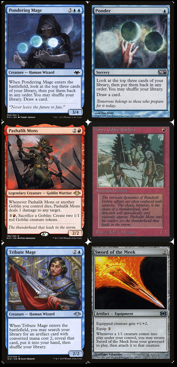 And our Tribute Mage is seeking what she should, a two-card combo with Thopter Foundry and Sword of the Meek.