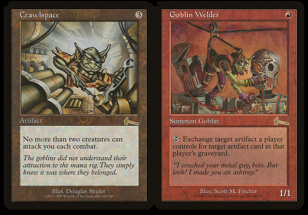 His mechanic is Goblin Welder, but that is absolutely the little gobbo in Crawlspace. Nice art homage there.