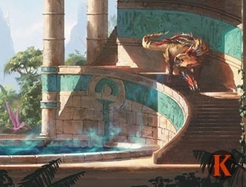 Modern Horizons didn't just provide a home for unused art from the long past. A couple more recent pieces waiting for their time to shine found a home as well. Fountain of Ichor was made for Ixalan, likely in the slush art pile, like many unused masterpiece cards reassigned or still waiting for the right set. Wizards editor Del Laugel mentioned the other side we already know, because we've seen it before, with an appearance from Shivam Bhatt's MTG Twitter account: