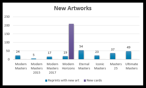 The first topic must be the sheer quantity of new art. This is an all time new high compared to the Masters sets. This product is not a Masters set, but a Masters set is the closest analogue to the play experience of nostalgia mixed with new art we have experienced. Modern Horizons is not entirely reprints, and that mind shift of reprinted cards plus considerable new cards exponentially increased player enjoyment of the set. You assume there would be new cards and new art, but over 200 is just absurd level good.