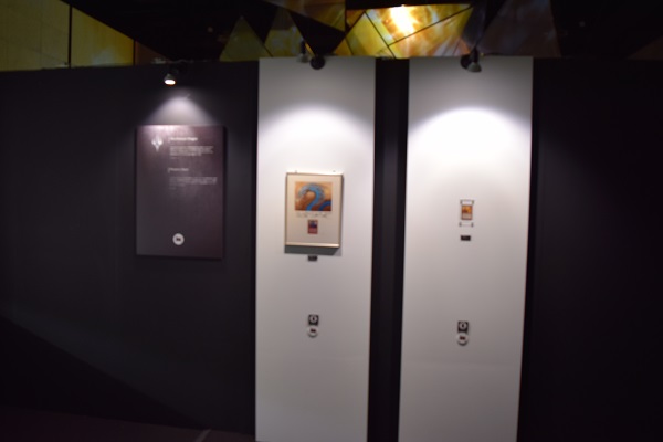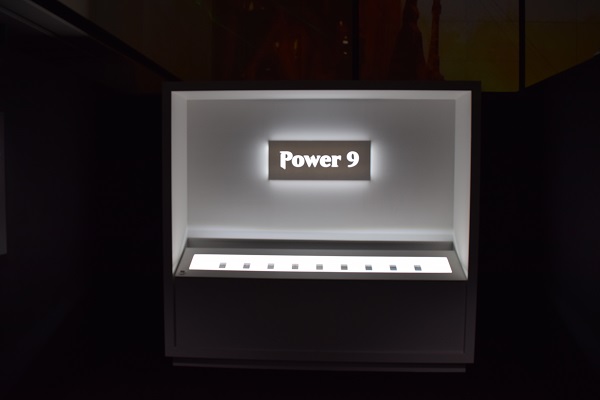 Before stepping into the art show, a full set of Beta power 9 cards in their own display case was shown. This changed the mood of the show, from fully lit to no photos by visitors and darker walls.