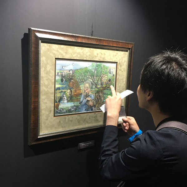 The first artwork was one of Japan's most beloved, Descendant's Path by Terese Nielsen. As you walk through the art show, please know that I had a ton of help from a local company, Terrada Art Assist Co. They were mega passionate about art, framing pieces that even came unframed. Collectors were then able to keep the black on white frames.