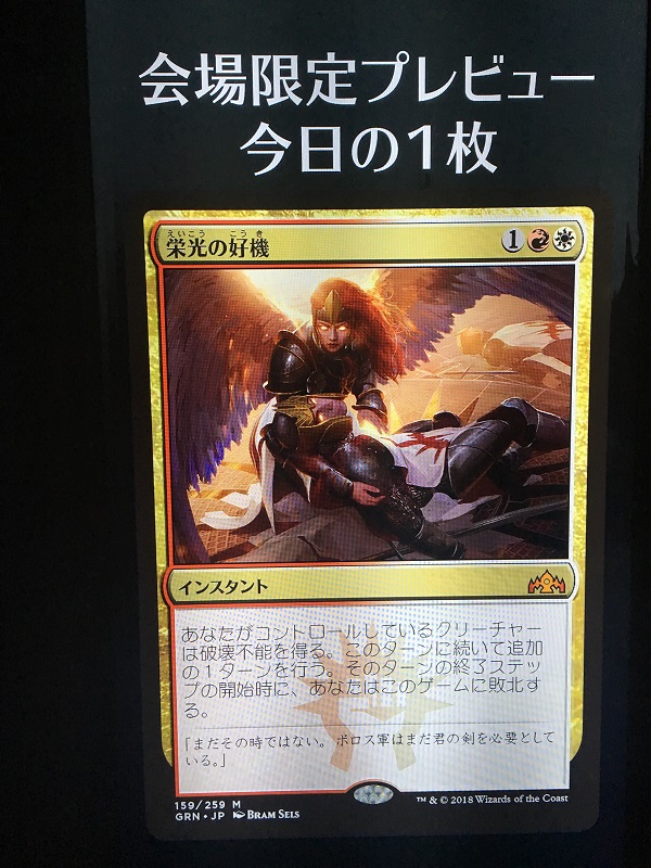 As you were leaving, there were video monitors with a new preview card every day of the exhibition. If you saw the Japanese preview cards that were grainy like below, you know where they came from now.