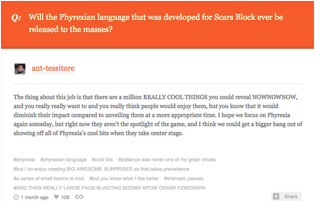 What I wanted to know is, Where is this language? Why hasn’t the full language been revealed to the Magic community? I asked Doug Beyer on A Voice for Vorthos if we would ever see the language, and he kindly responded with the following: